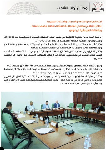 ،55/2023 ﺩﺪﻋ ﺔﻴﻨﻔﻟﺍ ﻦﻬﻤﻟﺍﻭ ﻥﺎﻨﻔﻟﺎﺑ ﻖﻠﻌﺘﻤﻟﺍ ﻥﻮﻧﺎﻘﻟﺍ ﺡﺮﺘﻘﻣ ﻲﻓ ﺮﻈﻨﻟﺍ 2025 ﻲﻔﻧﺎﺟ 9 ﻡﻮﻳ ﺔﻨﺠﻠﻟﺍ ﺖﻠﺻﺍﻭ